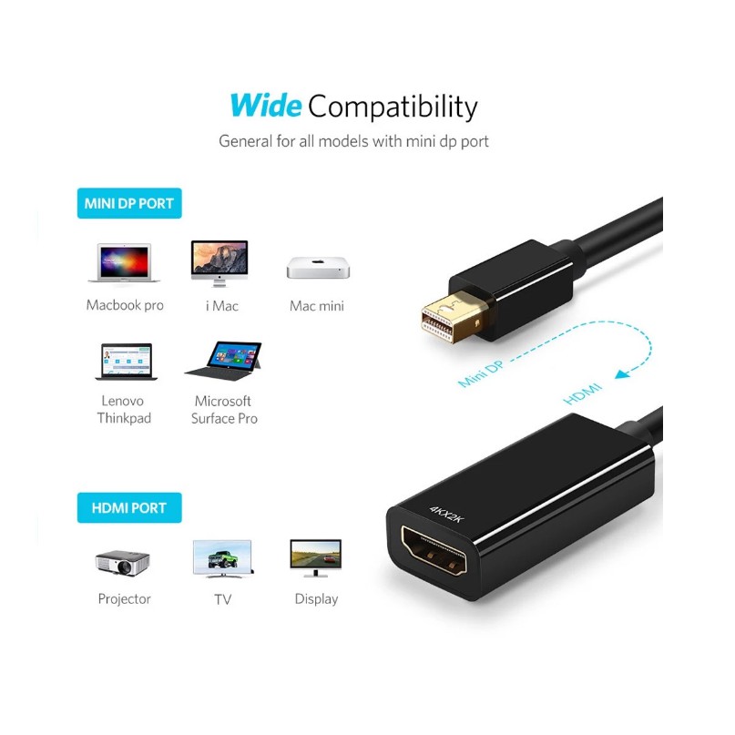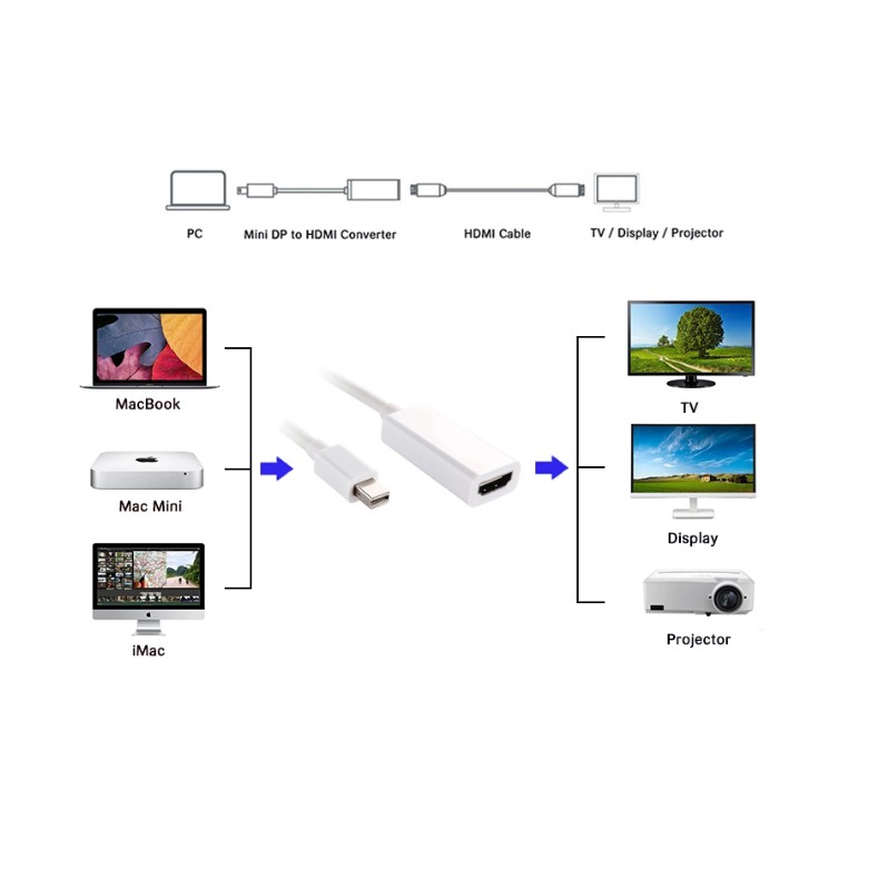 Mini Displayport (male) to HDMI (female) output Converter – Display port Mini DP to HDMI port Adapter|Project|Ext Monito